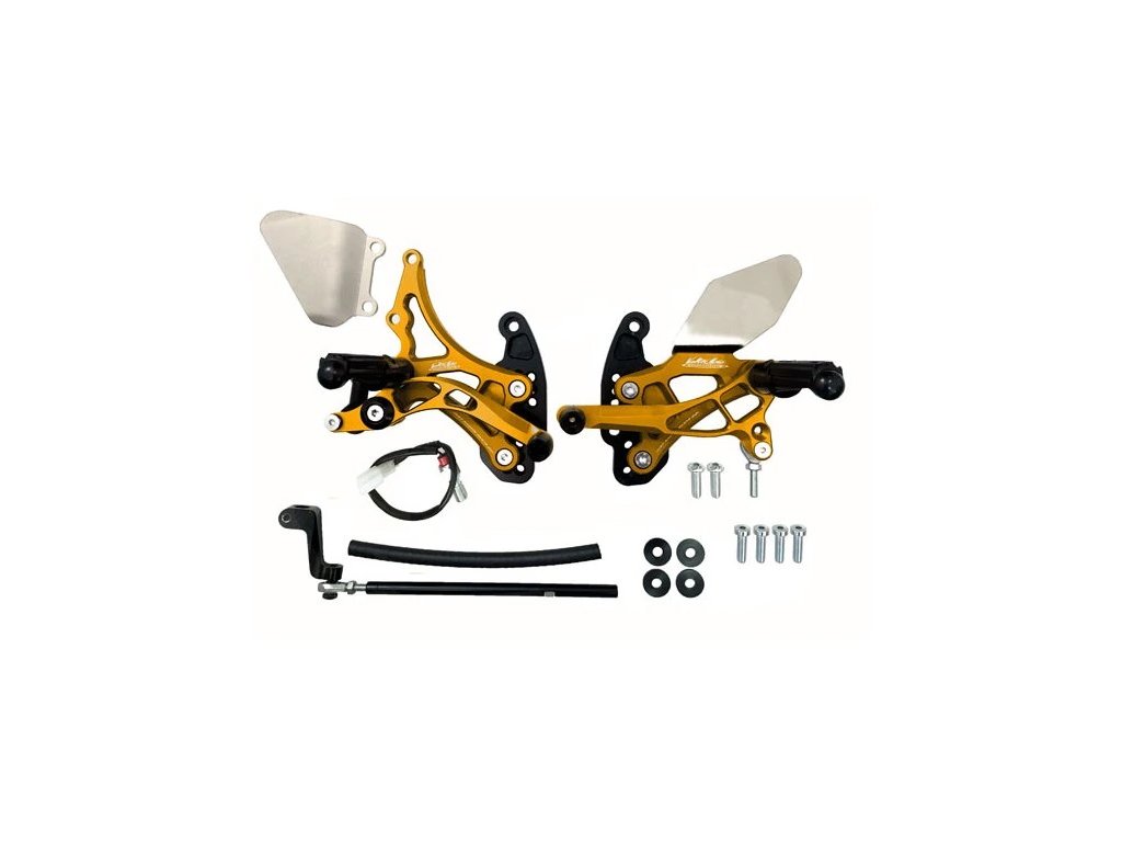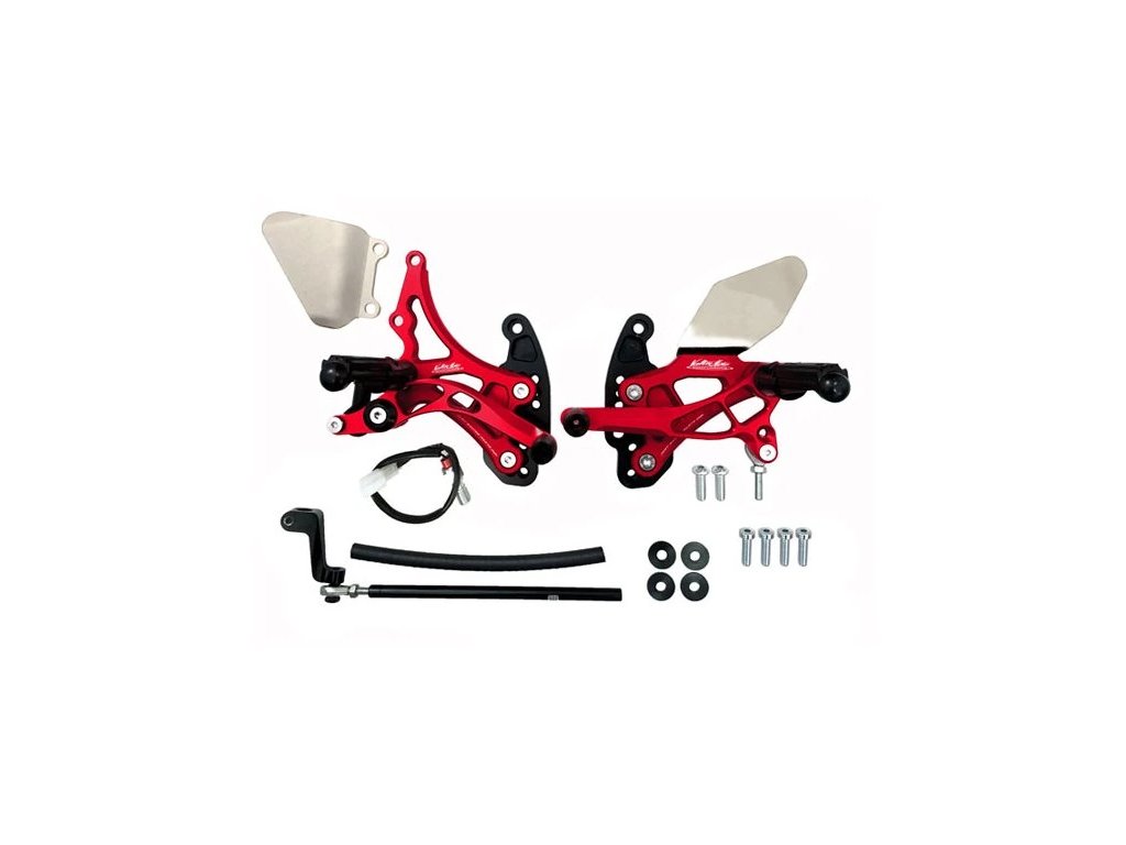 Všetky TYP1 majú posun stupačiek oproti originálnym o 2,5cm dozadu a nahor. Je si ich možné zakúpiť v čiernej farbe, s možnosťou prikúpenia nožných opierok z duralu alebo titánu. Každá sada obsahuje ľavú aj pravú stranu stupačiek, radiace tiahla, guľové kĺby a všetky komponenty potrebné pre montáž.
